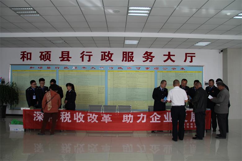 和硕县地税局与和硕县国税局在和硕县行政服务大厅开展第26个税法宣传月活动