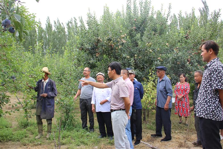 “开春的时候发改委的亲戚专门组织我们学习过,平时也经常去家里了解果树成长情况,但是还是自己的技术管理不到位,没有经验,有些果树干枯了,今天发改委的干部再次带我们来专业户这里学习技术,看到人家树上硕果累累挂满枝丫,我很有信心,真得谢谢我们的好亲戚!”亲戚赛甫尔·沙德克边学习边感慨,言词话语间表露出对增收致富的满满信心。