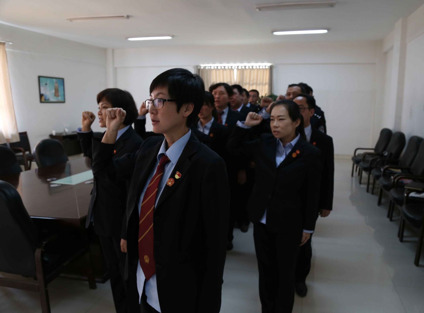 “起来,不愿做奴隶的人们...... 把我们的血肉筑成我们新的长城”,该院主题党日活动在雄壮的国歌声中拉开序幕。此次主题党日通过奏唱国歌、重温入党誓词、交党费、诵《党章》、知党情、评工作、议发展、座谈讨论等8项活动,让全体党员干警灵魂受到洗礼、思想受到教育、党性修养得到提升,切实增强了党员“四种意识”,让党员思想上有归属感,行动上有自觉性。