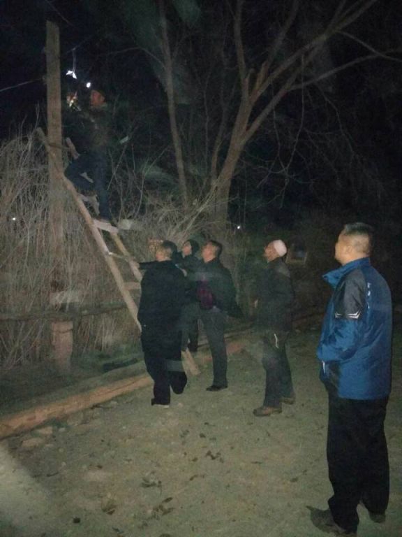 2018年1月20日,和硕县国土资源局党组书记黄益权同志带领第二批9名下沉干部入住村民家中,第一时间对村民家中是否安装了一氧化碳报警器、门窗是否牢固等安全措施进行检查。在检查买买提·哈斯木老人家庭安全情况时,发现他家里已经停电1天了,由于家中只有他一个老人不知道该怎么办,电灯不亮、电器开不了、电动车动不了,生活非常不便,但此时天色已晚。但群众的困难必须马上办不过夜,这是和硕县国土资源局下沉干部的原则和服务群众的信念。黄益权同志立刻组织下沉干部检查线路、购买材料,下沉干部王建国、莫尔阿地力·吐尔逊两位同志借来梯子上房检查线路,经过排查发现是地埋线路处理故障,需要挖出电线维修,下沉干部才吾家甫同志购买150元的试电笔、电线等材料。由于天寒地冻地面上冻铁锹挖不动,黄益权、王建国等同志又借来十字镐、坎土曼等工具一点一点挖,冻土层在国土下沉干部的热情下被一点一点融化。经过2个多小时的辛苦工作,在夜晚10点多时,终于修好了电路。买买提·哈斯木老人高兴地连连对周围群众说下沉干部亚克西。这是和硕县国土资源局下沉干部践行服务群众,为群众排忧解难承诺的一个缩影。