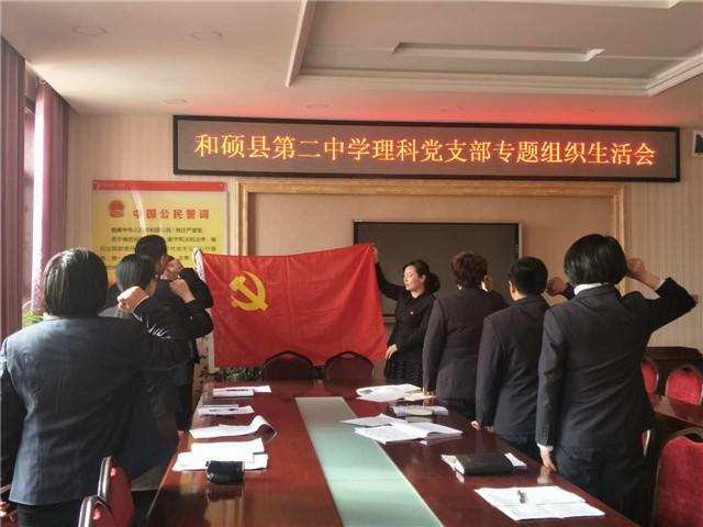 根据县委组织部要求,和硕县第二中学理科党支部高度重视、周密组织,对专题组织生活会前期各项工作进行了精心筹备,经过县教科局党委审核同意后于2月27日上午10时召开了“不忘初心,继续前行”专题组织生活会