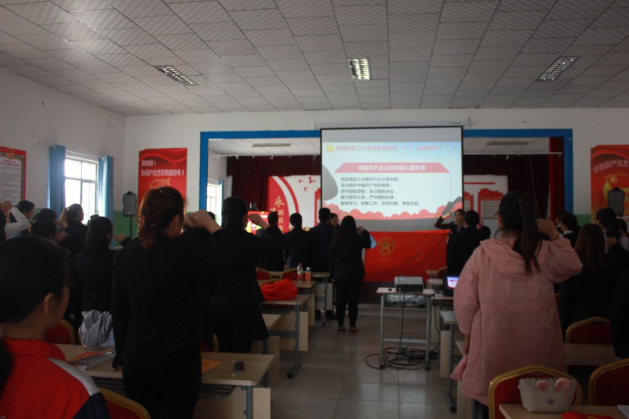 按照自治州《基层党支部“8+X”主题党日活动办法及自治州《关于常态化开展“牢记誓词、践行承诺”活动的通知》,2018年4月28 日下午,和硕县第二小学党支部召开“8+X主题党团日”活动会议由学校党支部负责主持,全体党团员、入党积极分子、大队委少先队员应到110人、实到102人参加了此次会议。