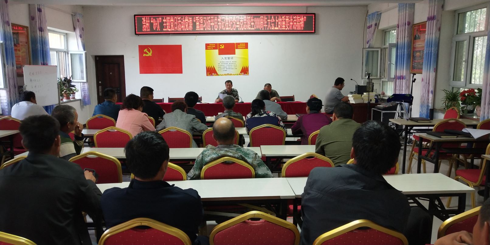 在村委会活动室里,全体党员齐唱国歌、重温入党誓词、在鲜红的党旗前,全体党员干部及入党积极分子庄严举起右手,重温入党誓词,使每名党员干部的心灵受到了一次震撼,永葆党员先进性的坚定信念,增强党员意识,自觉遵守党的纪律,确保做一名合格的共产党员。