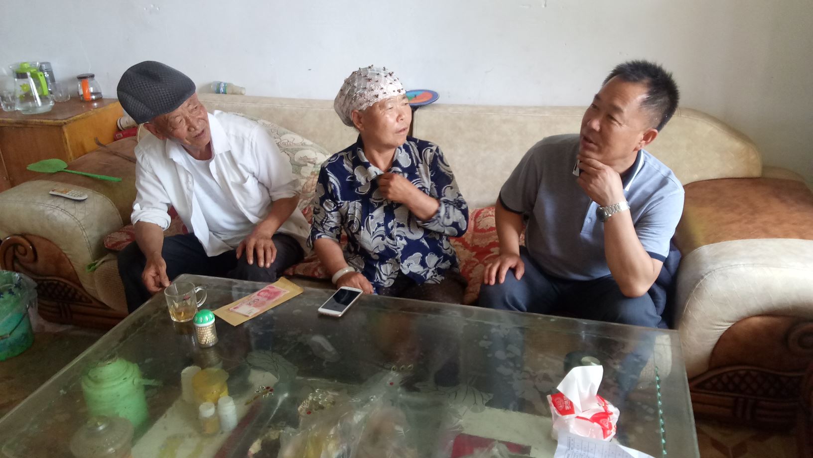 在慰问中,县包联领导政协主席赵卫东与慰问对象亲切交谈,详细了解他们的困难和需求,鼓励他们要努力克服困难,相信会在各级党委,政府的帮助和大家的共同努力下,相信以后的日子会越来越好。据悉,今年50岁的艾则孜·买合木提是几年前从南疆迁户到浩尧尔莫墩村困难群众,无房无地,靠给别人放羊维持生活,妻子没有工作,孩子在上幼儿园,由于工资很低,日常生活十分困难。得知艾则孜·买合木提的家庭情况后,赵卫东鼓励他们一家人要积极乐观地面对坎坷,在党和政府的关怀帮助下,想办法改善生活,走出困境。