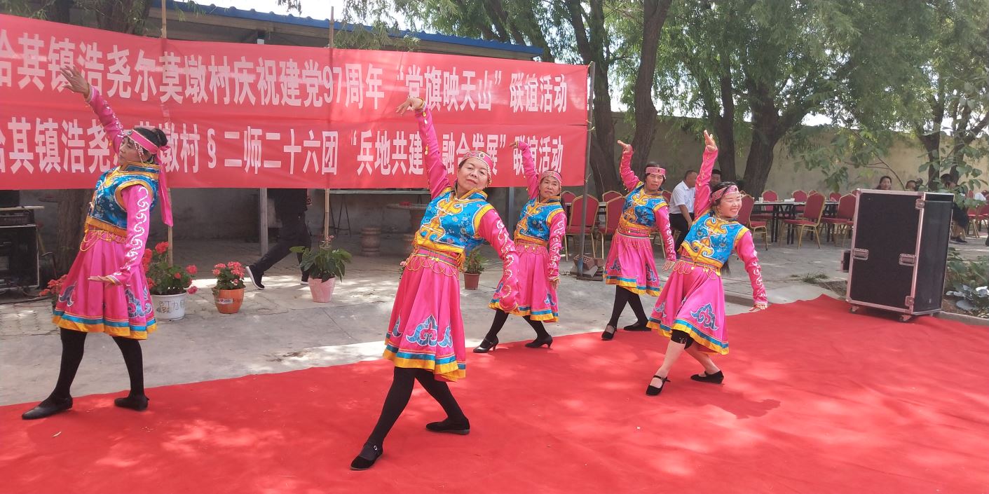 7月1日,塔哈其镇浩尧尔莫墩村与二师二十六团开展“兵地共建、融合发展”联谊活动暨庆祝建党97周年主题党日活动。参加此次活动的有县检察院、二师二十六团老师、驻村工作队、党员及村民代表共计120余人。