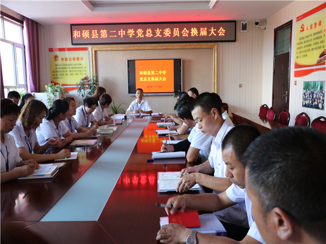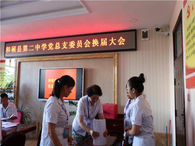 学校党总支高度重视党总支委员会换届选举工作,会前进行了安排部署,精心组织,认真实施。会上党总支书记张玉春同志代表上届党总支作工作报告。会上第一届党总支委员朱铁峰副校长传达了和硕县教科局党委《关于同意和硕县第二中学党总支关于换届选举及委员候选人的批复》文件精神。