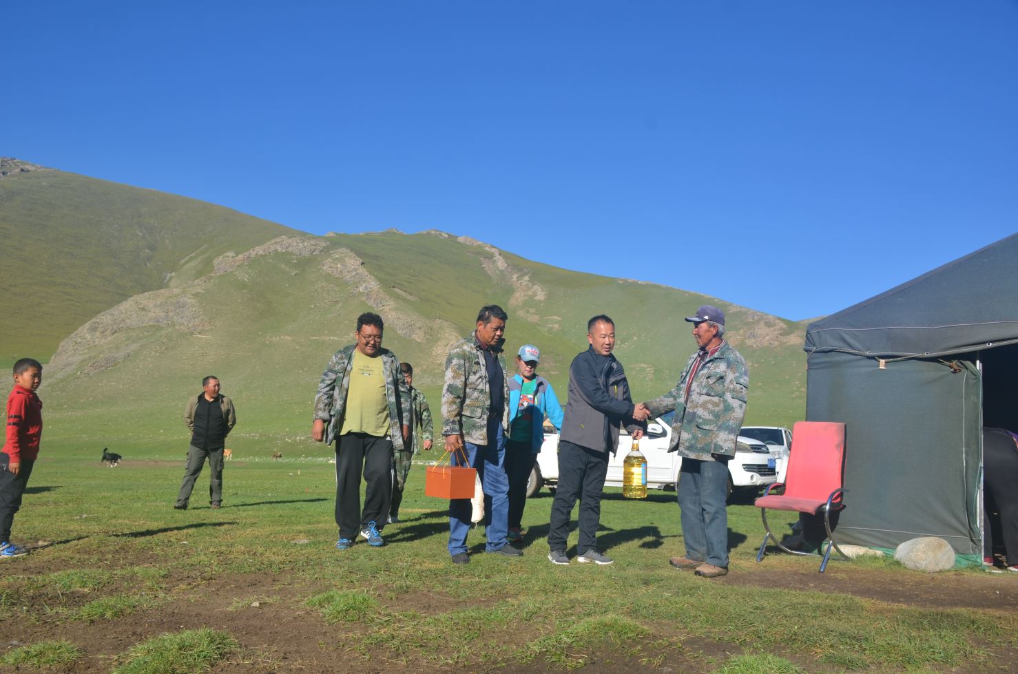 杜木德塔西海牧场是塔哈其镇浩尧尔莫墩村牧民夏季放牧的主要场所,居住着28户牧民,承担着5000多头牲畜放牧的任务,每年放牧的时间长达三个多月,生活条件艰苦。这次村“两委”班子和工作队带着米面油、瓜果蔬菜、常用药品等来到牧区,将党的关怀延伸到最后一公里,实现服务牧民群众“零距离”让闻讯赶来的牧民激动之情溢于言表。