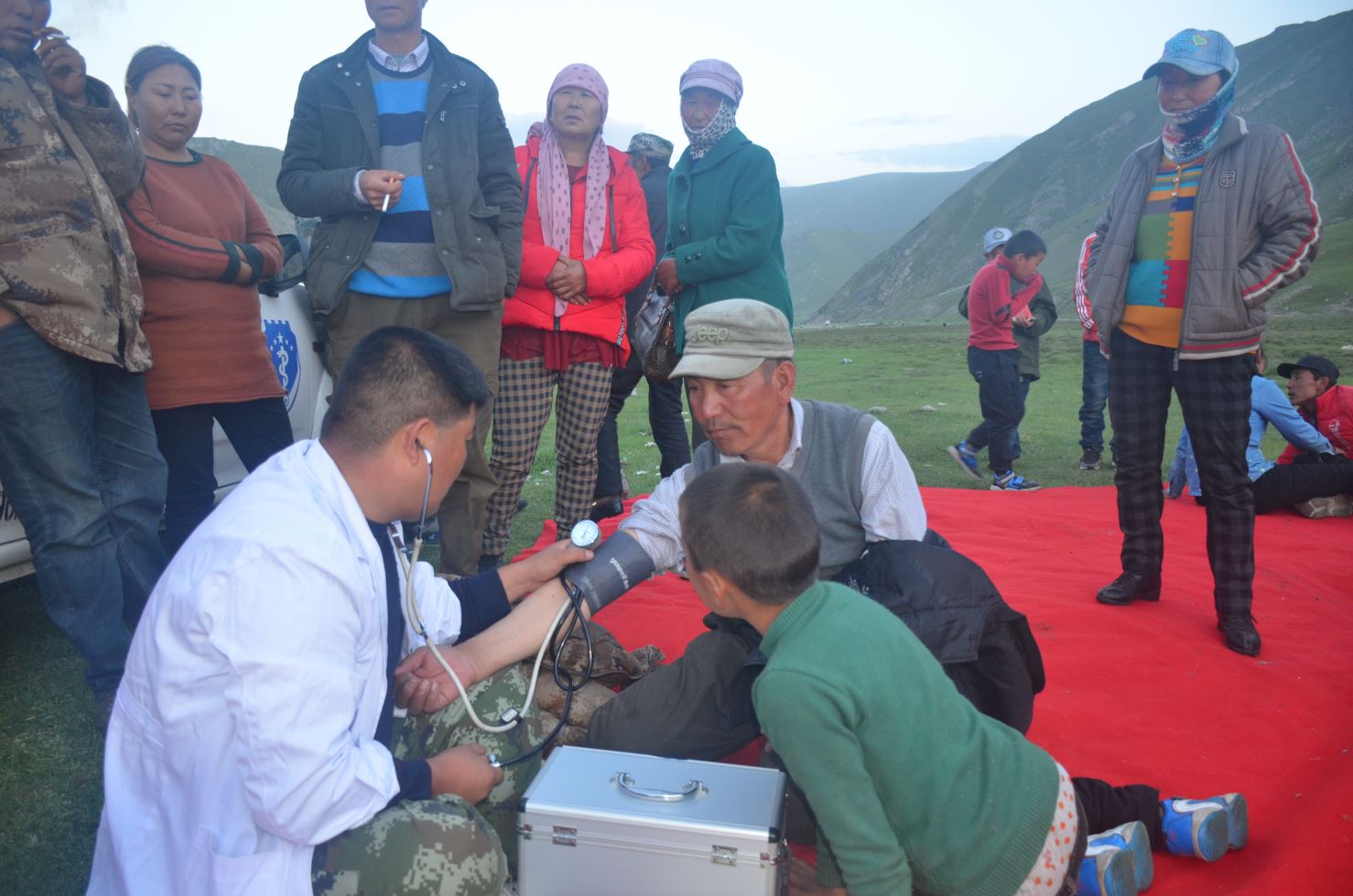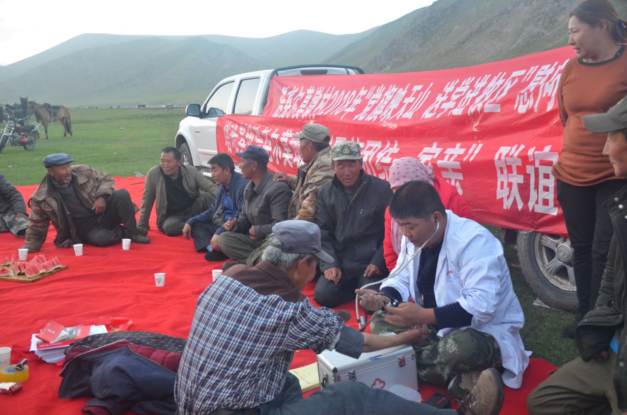 塔哈其镇浩尧尔莫墩村村医樊吉天是这次慰问团队中的一员,每到一处他都会为牧民把脉、量血压,详细询问他们的身体状况,为他们做检查,讲解注意事项。