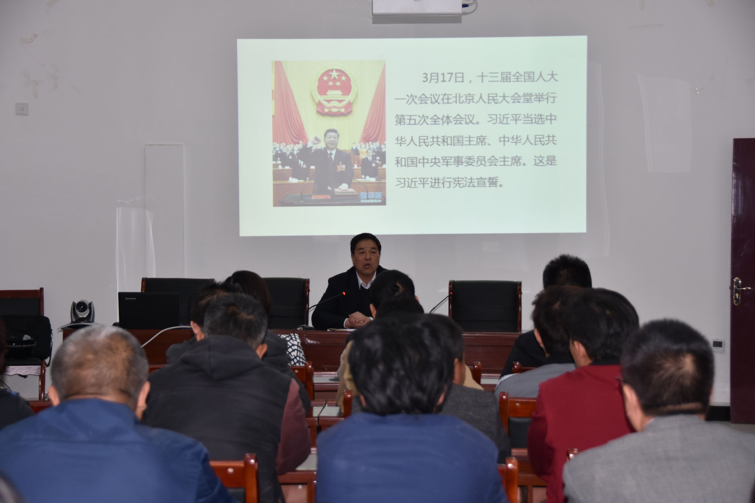 会上,楚洪涛同志传达了2018年第十三届全国人大第一次会议、十三届全国政协第一次会议和习近平总书记重要讲话精神,2018年政府工作报告重点、陈全国书记在全区贯彻新发展理念打好三大攻坚战部署会上的讲话精神等相关内容。