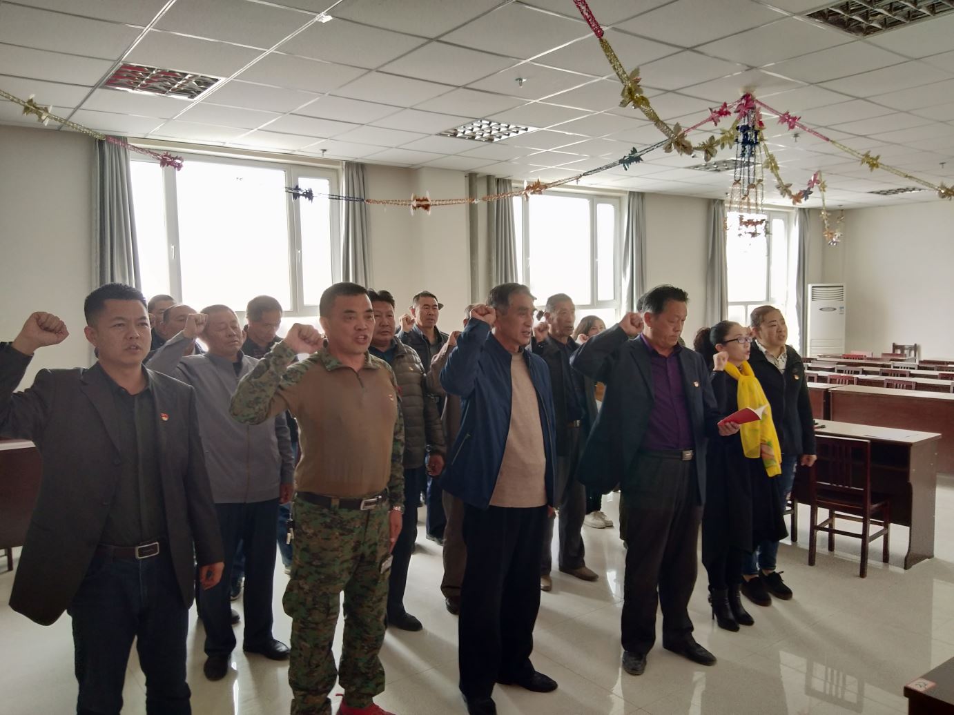 在和硕县老干局活动室,一场别具特色的“8+X”主题党日活动正在开展,共有15名退休老党员参加。活动议程主要有重温入党誓词、缴纳党费、上党课、无职党员认领岗位、集体表决设立流动党员服务站等。