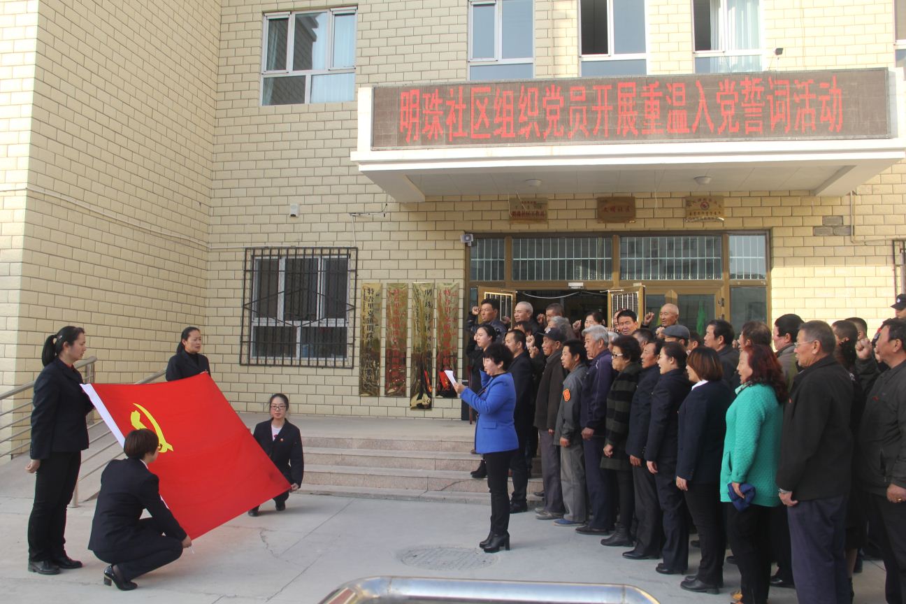 近日,明珠社区邀请党的十九大代表排力杰同志到社区与全体党员开展“8+X”主题党日活动。活动严格按照“8+X”主题党日流程开展,全体党员干部齐唱国歌、重温入党誓词、现场缴纳党费,排力杰同志为党员佩戴党徽,大家一起学习齐诵《党章》总纲,支部书记还为大家上党课。