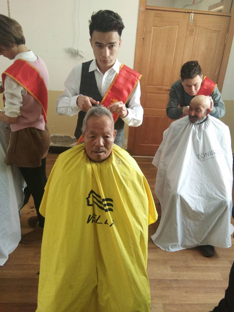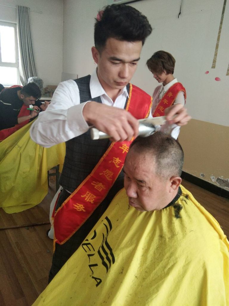 虽然为老人理发是一件简单的工作,但是理发师们仍然神情专注、一丝不苟,为老人理出清爽利落的发型。“今天早上我吃过早餐后就过来了,这是我给第九位老人理发了,胳膊确实有些酸痛。”正在为老人理发的小伙小亮轻声说,“他们就像我的爷爷奶奶一样,能帮他们把头发收拾干净、清爽,我觉得比什么都快乐。”