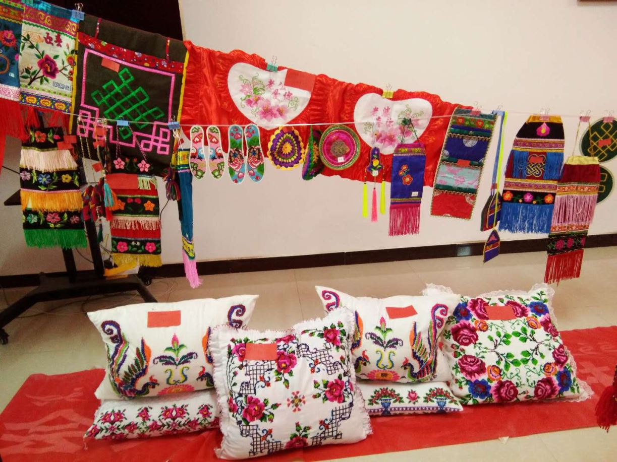 活动的亮点当属浓浓乡土味的手工艺品展示。 200余件手工艺品都是村民自己动手制作的,栩栩如生,形象逼真。帐篷模型、骨雕、织毯、沙画、沙枣木枕、梧桐木笔筒还有做工精细、色彩艳丽、图案精美的刺绣枕头、十字绣、布艺品、香包等,吸引了不少群众驻足观赏。