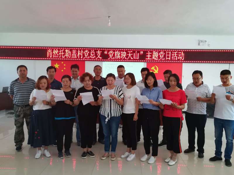 深入学习贯彻落实党的十九大精神,激励党员干部进一步坚定信心、敢于担当,更加清醒地认识到肩负的责任和使命,更好地发挥战斗堡垒作用和先锋模范作用,以村第一书记讲党课、老干部谈体会,过去与现在的对比变化等,组织下沉县直部门县总工会、文广局、残联、妇联、编办、农行全体下沉党员干部及村里31名党员结合村实际情况,围绕和焦距总目标,开展《党旗映天山》主题党日活动。