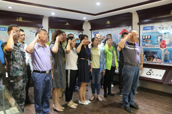 参观结束后,全体党员干部重温了入党誓词,将警示教育内容铭记于心。通过接受教育,党员干部们心灵深处受到震撼和警醒,在今后的生活、工作、学习过程中,将以案为鉴,警钟长鸣、常思贪欲之害,常怀律己之心,坚持做到慎独、慎初、慎微,恪守道德底线,牢记服务意识
