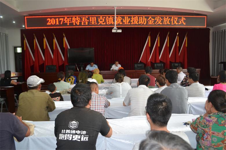 8月28日,和硕县特吾里克镇在该镇四楼报告厅举行就业援助金发放仪式,为42名名就业困难人员发放就业援助金12.6万元。