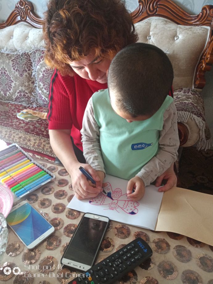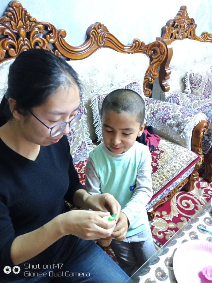 据了解,早热古丽这两天都在单位值夜班,所以木拉提·艾合木提晚上都是和特吾里克镇机关干部热孜万古丽和全海燕二人一起度过的。热孜万古丽和全海燕得知木拉提·艾合木提喜欢画画,特地带他去文具店买来了彩笔、画纸还有他最喜欢玩的彩泥。她们又从网上找了几个简单的简笔画图案,和木拉提·艾合木提一起画,还陪他玩彩泥,小家伙每天都兴奋的不得了。早热古丽说:“你们来了,我都不用担心孩子没人管了,上班也更踏实了。而且每天回来我儿子都很兴奋跟我说你们和他一起玩的事情,真是太好了!”