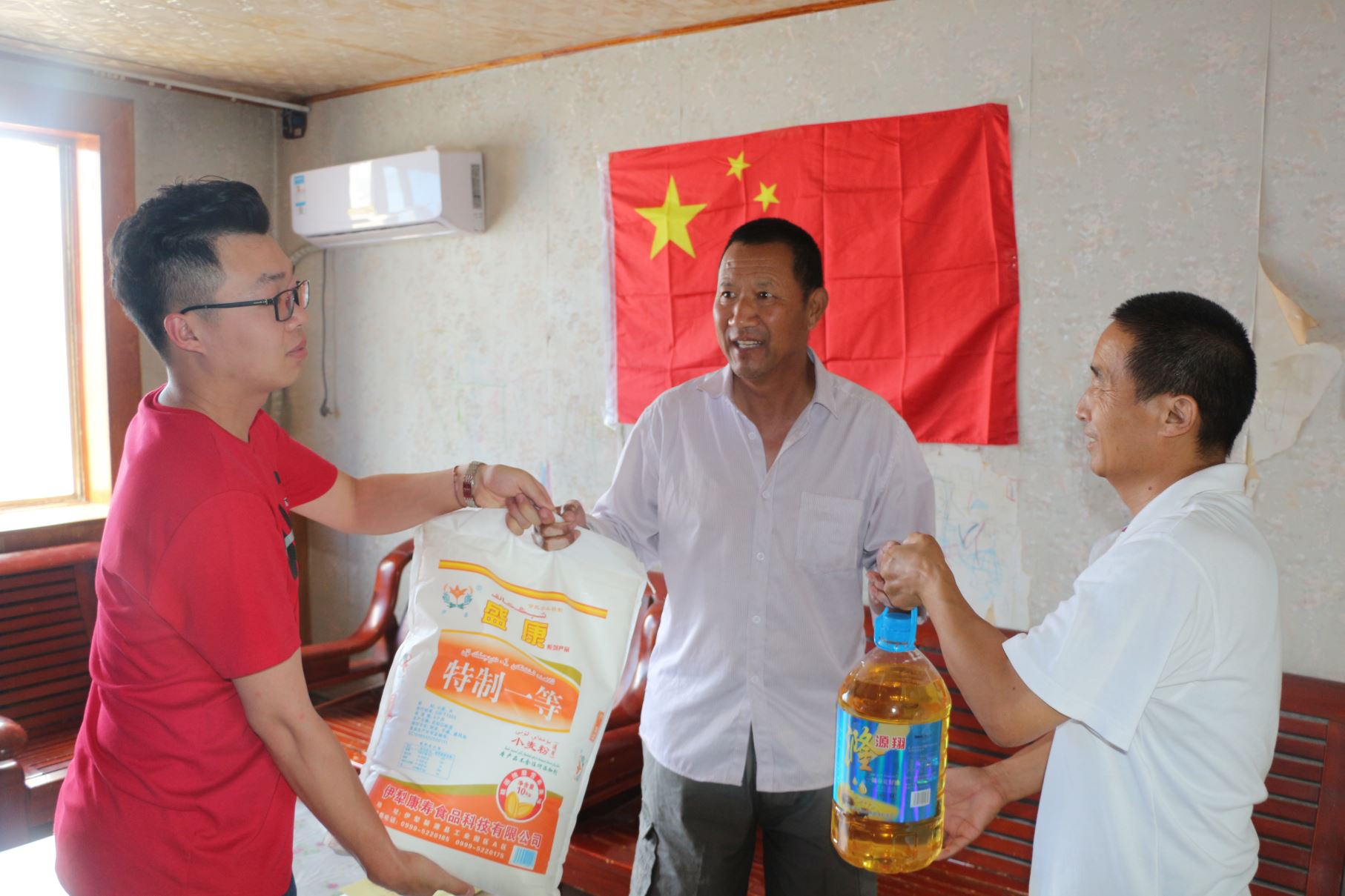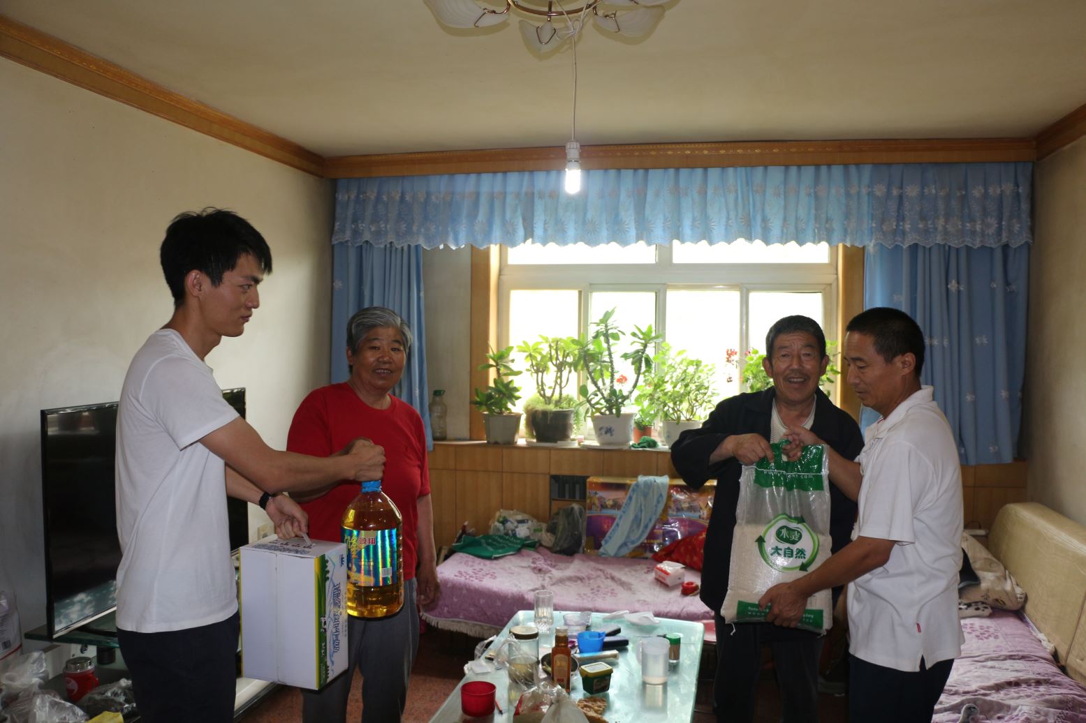 图4:6月28日和硕县国税局驻龙驹社区工作队一同看望家住光明小区的老党员关应明,并送去面粉和清油等慰问品。