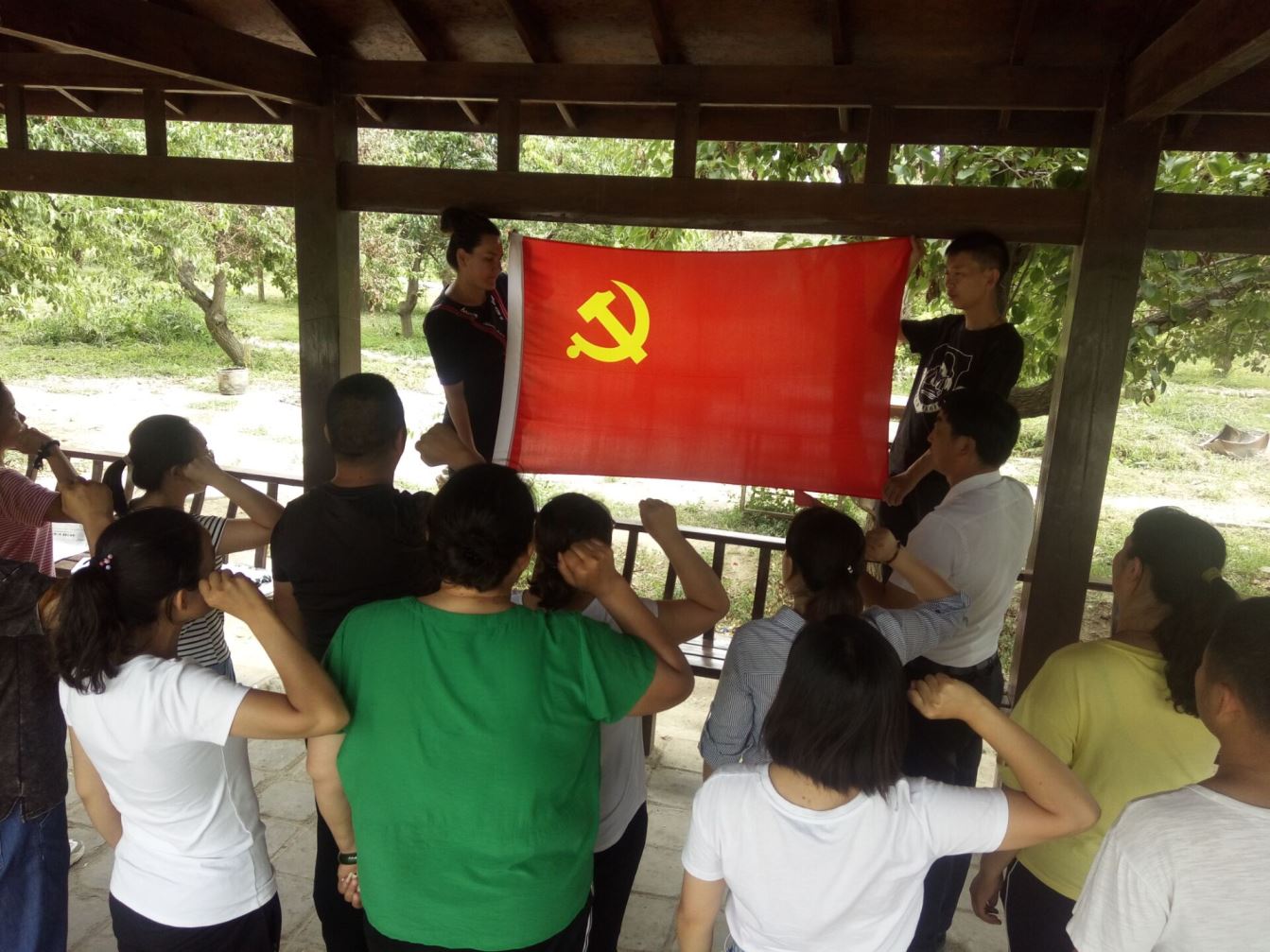 参观结束后,在展馆外的长廊里,全体党员干部在党旗下庄严地重温了入党誓词。再次宣誓忠诚、牢记使命、坚定信念,表达拥护党的纲领、遵守党的章程、履行党员义务、执行党的决心、严守党的纪律、保守党的秘密、对党忠诚,愿为共产主义奋斗终身的坚定态度和决心。