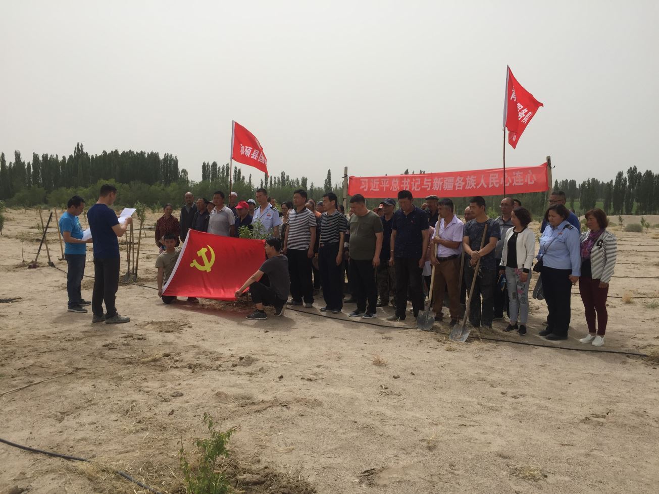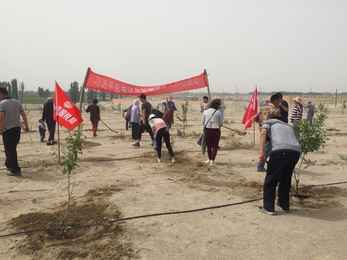 为深入推进和硕县国税局党支部和乌什塔拉乡沙梁湾村党总支党建工作整体水平,构建“资源共享、优势互补、双向共赢”的局村党建合作新格局,5月30日上午,和硕县国税局党支部全体党员深入党建结对帮扶村乌什塔拉乡沙梁湾村欧洲李扶贫基地,开展了以“精准扶贫、义务劳动”为主题的“8+x”主题党日活动,和硕县国税局党支部全体党员、沙梁湾村党总支全体党员、入党积极分子和部分村民共计60余人参加了活动。