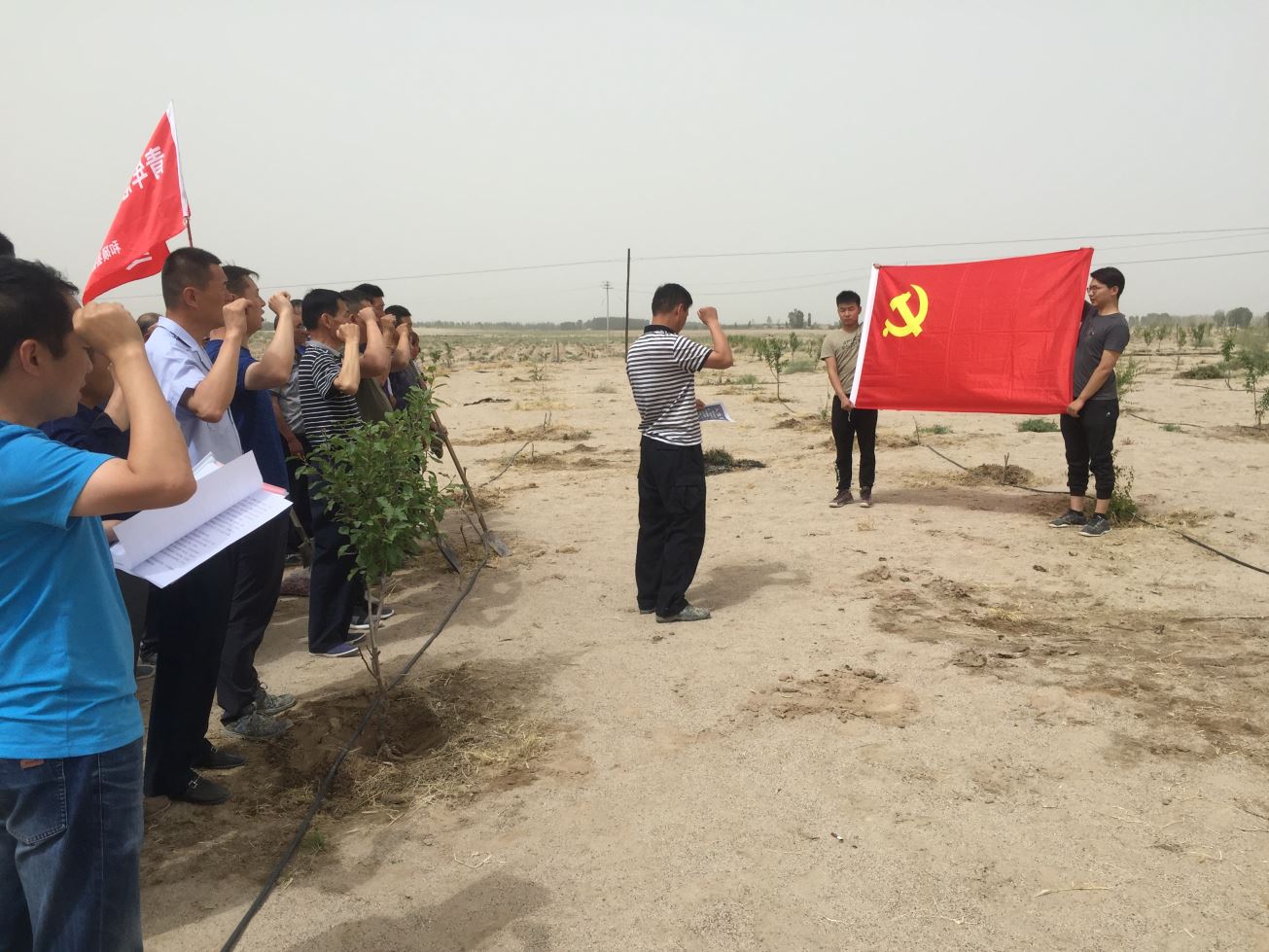 “我志愿加入中国共产党,拥护党的纲领......”活动在庄严的重温入党誓词中拉开序幕,30余名局党员和村党员聚在一起,通过“我是中国公民宣誓”、“抵制宗教极端宣誓”、“诵党章”、“讲党课”、“发声亮剑”等环节进行主题党日活动,切实增强了党员“四种意识”,让党员思想上有归属感,行动上有自觉性。活动结束后,全体党员在欧洲李基地进行了果树修剪、抹芽、锄草义务劳动。