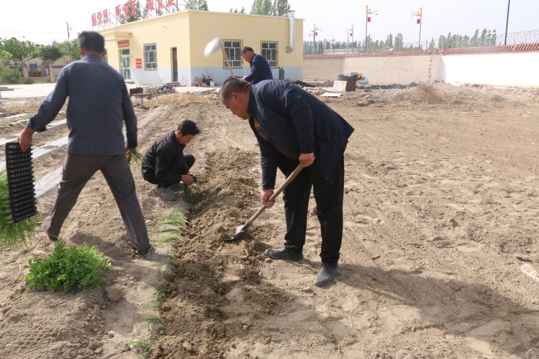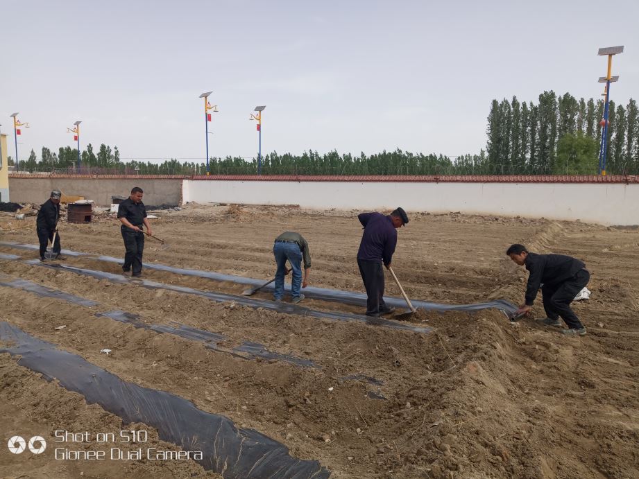 为给村委会减轻负担,节约生活费用,解决吃菜问题。5月6日,新塔热乡新塔热村村委会大院里一片繁忙景象,驻村工作队、村委会干部在烈日的照射下紧张有序地种植西红柿、辣椒、黄瓜、大葱等菜苗,放菜苗、浇水、铺膜、盖土等大家干得热火朝天。